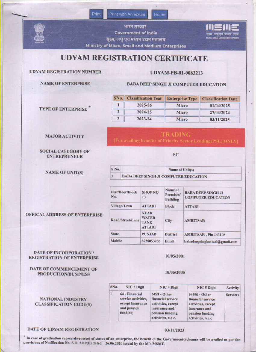 Reg. By:- Govt. of Punjab. An ISO Certified Institute
